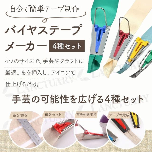 バイヤステープメーカー 4種セット 手芸 DIY パッチワーク クラフト カスタマイズ ホームメイド アクセントテープ 手作り 簡単操作 便利 ミシンアクセサリー agesugi_snk