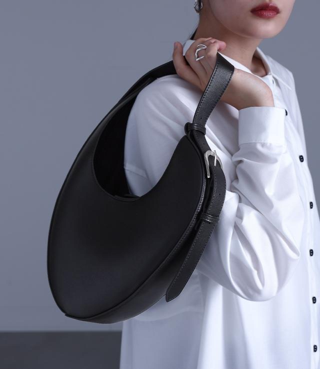 ハンドバッグ ショルダーバッグ レディース 鞄 かばん 肩掛けバッグ バックル ベルト リサイクルレザー 無地 小さめ ハーフムーン 【TP】 バッグ 肩掛け クラッチバッグ ミニバッグ ムーン 三日月 合皮 フェイクレザー 春 夏 秋 冬 オールシーズン カジュアル シンプル モード キレカジ 上品 きれいめ ベーシック ニュアンス ラフ かっこいい エフォートレス 10代 20代 30代 40代 50代 60代 女子会 オフィス 通勤 通学 お買い物 お出掛け 旅行 リゾート レジャー おしゃれ お洒落 トレンド 流行 kOhAKU コハク 大人女子 大人可愛い お洒落可愛い 大人カジュアル スタイリッシュ 洗練 エッジィ osharewalker オシャレウォーカー おしゃれうぉーかー ブラック 黒 モノトーン モノクロ[ID]15am066[kOhAKUリサイクルレザープランプバッグ]