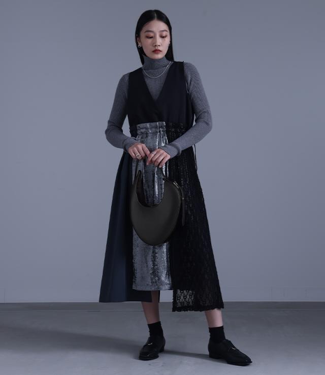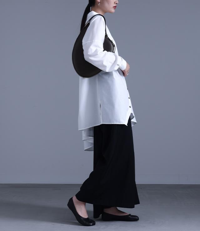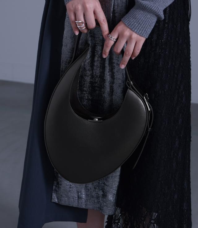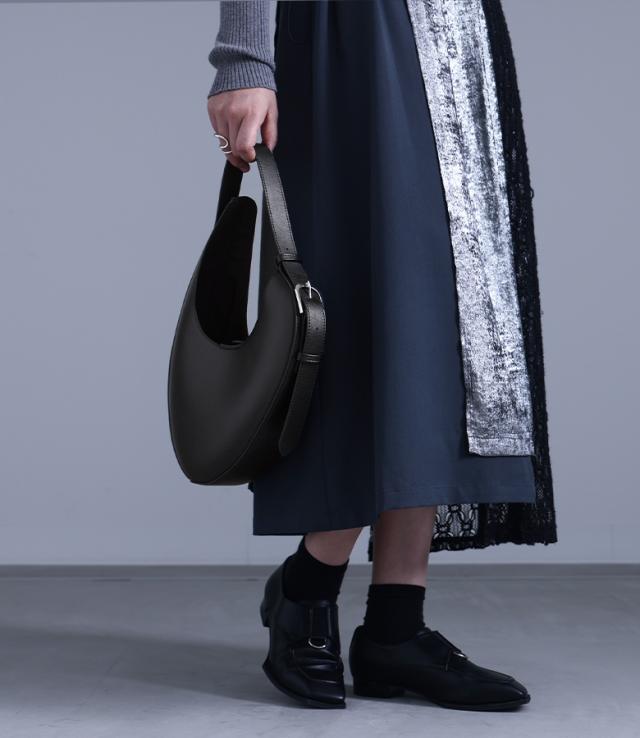 ■デザイン リサイクルレザーを使用した、モードな変形サークル型のオリジナルバッグ。バックルの効いたショルダーデザインがアクセントになります。 ■ディテール ・マチ有り ・内側オープンポケット、ファスナーポケット ■コーディネート シンプルなスタイルに合わせるだけでモードな雰囲気に導くデザインアイテム。無地や柄物・デザイン物とも相性が良く、シンプルながら個性的な印象に仕立てます。 ■素材 本来は破棄する革の破片やくずなどを集めて再加工し、レザーにアップサイクルしたリサイクルレザー。本革に近い風合いで、環境に優しい素材です。 |