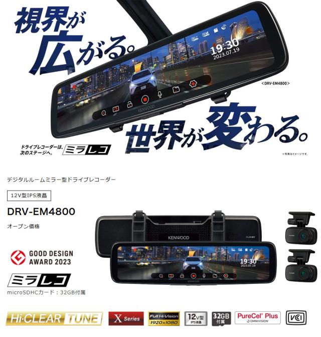 microSDHCカード32GB付属 DRVEM4800 視界が広がる。世界が変わる。更に進化したデジタルルームミラー型ドライブレコーダー