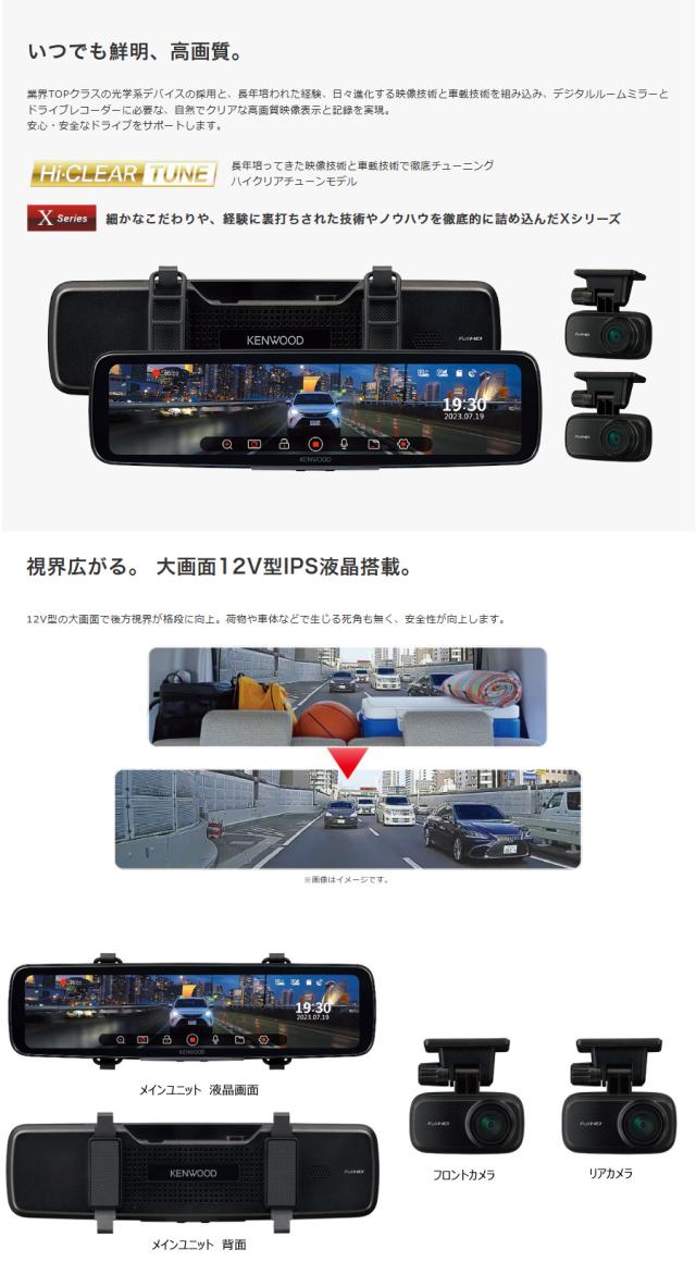 KENWOOD ケンウッド DRV-EM4800 12V型IPS液晶搭載 デジタルルームミラー型2カメラドライブレコーダー ミラレコ