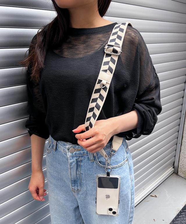 付属のホルダーをスマホケースに挟みストラップを付けるだけ!