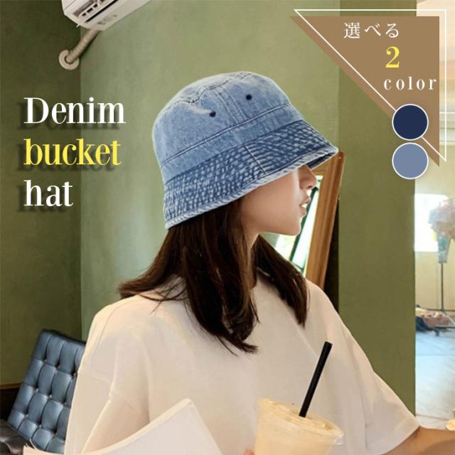 新作 選べる2カラー シンプル デニム バケットハット レディース メンズ 帽子 ハット バケハ UVケア 紫外線対策 つば広 深め コットン 綿 おしゃれ かわいい カジュアル ストリート 韓国 アウトドア 夏