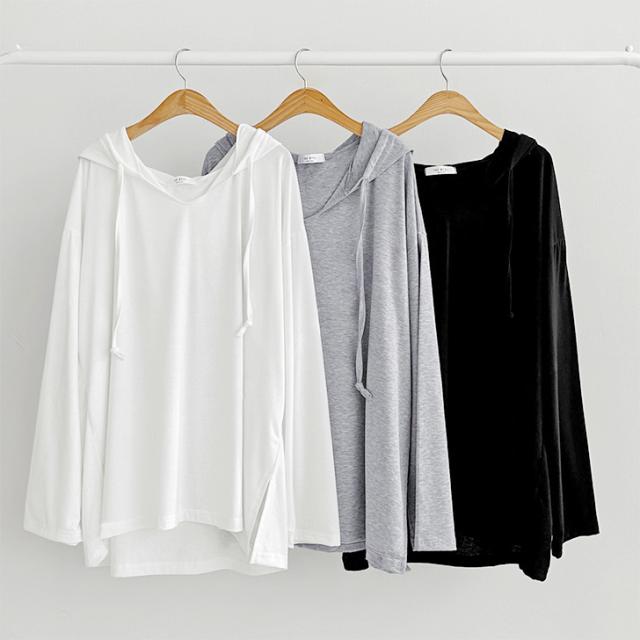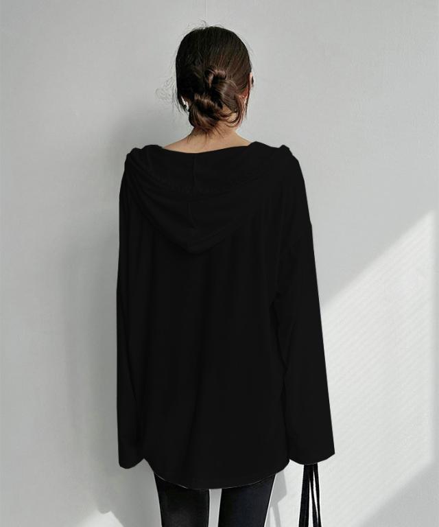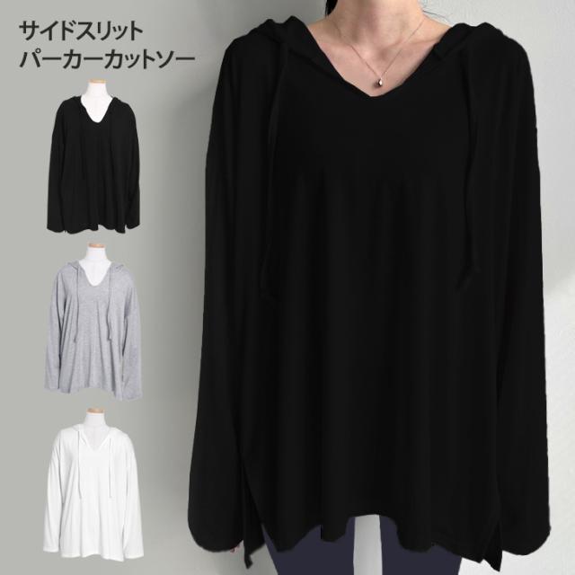 新作 ビッグシルエットサイドスリットパーカーカットソー レディース トップス ロンT プルオーバー 薄手 春 夏 秋 シンプル カジュアル 無地 ゆったり 大きめ 大きいサイズ ルーズ 韓国ファッション フーディー
