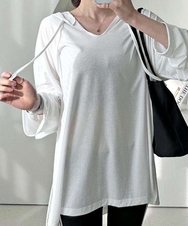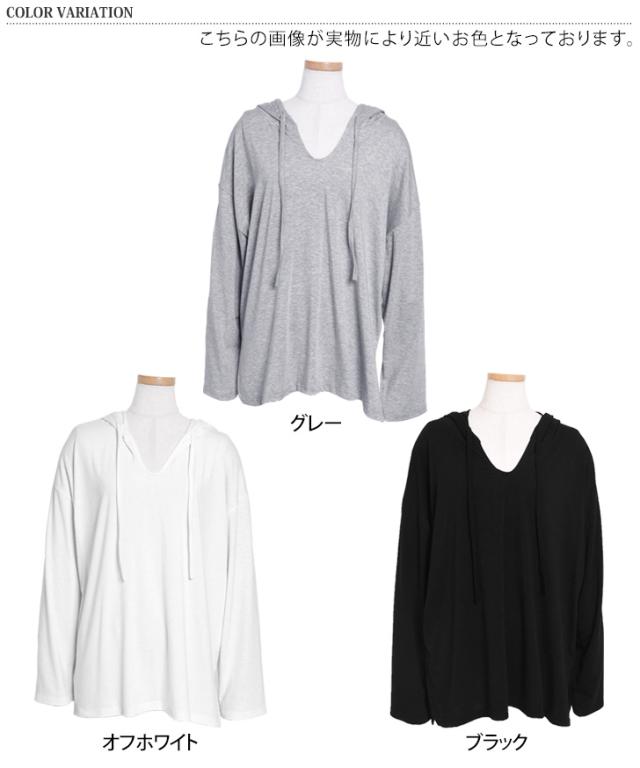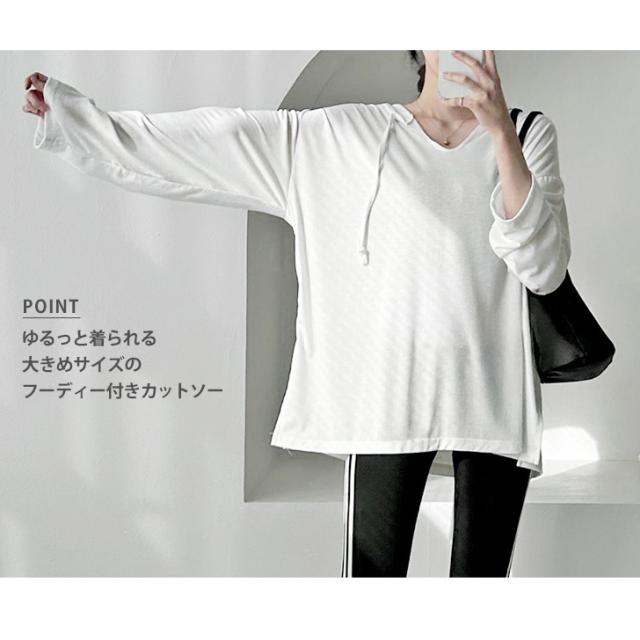 ●ゆるっと着られる大きめサイズのフーディー付きカットソー