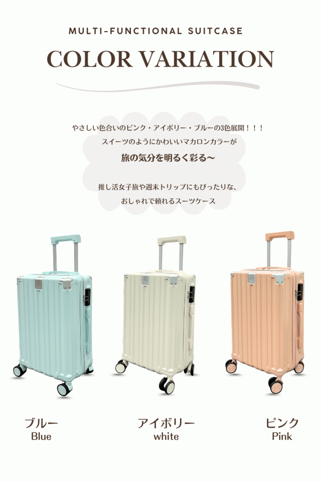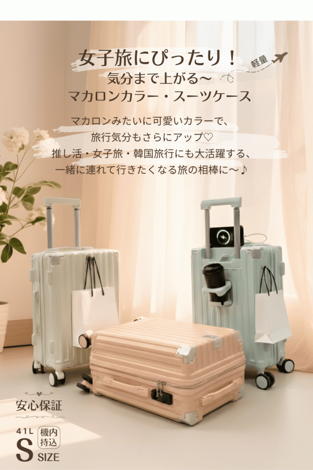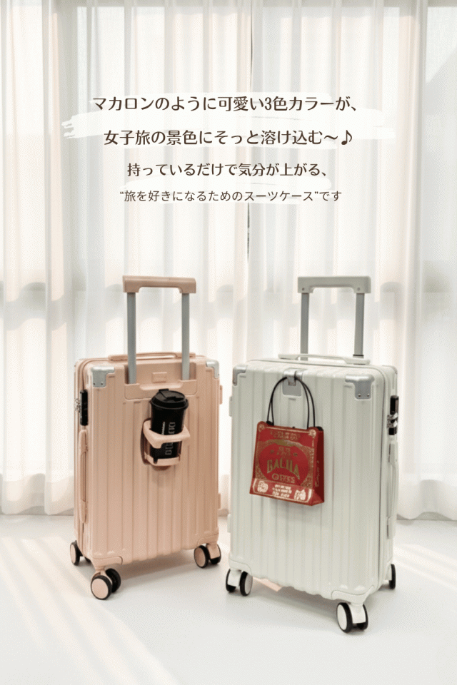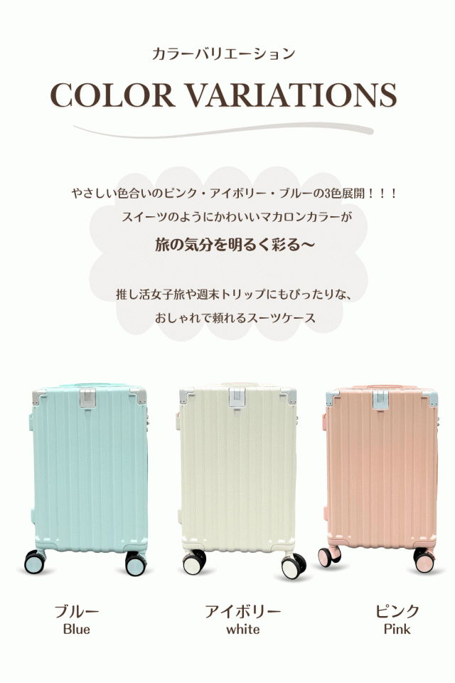 機能性はもちろん!持っているだけで心ときめくマカロンカラーのスーツケース♪ |