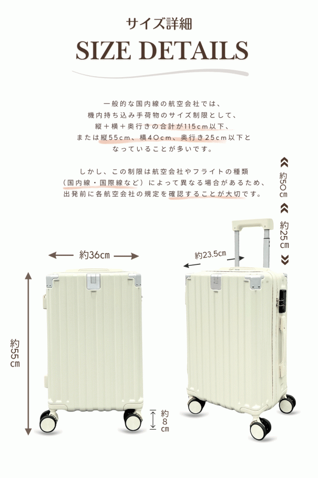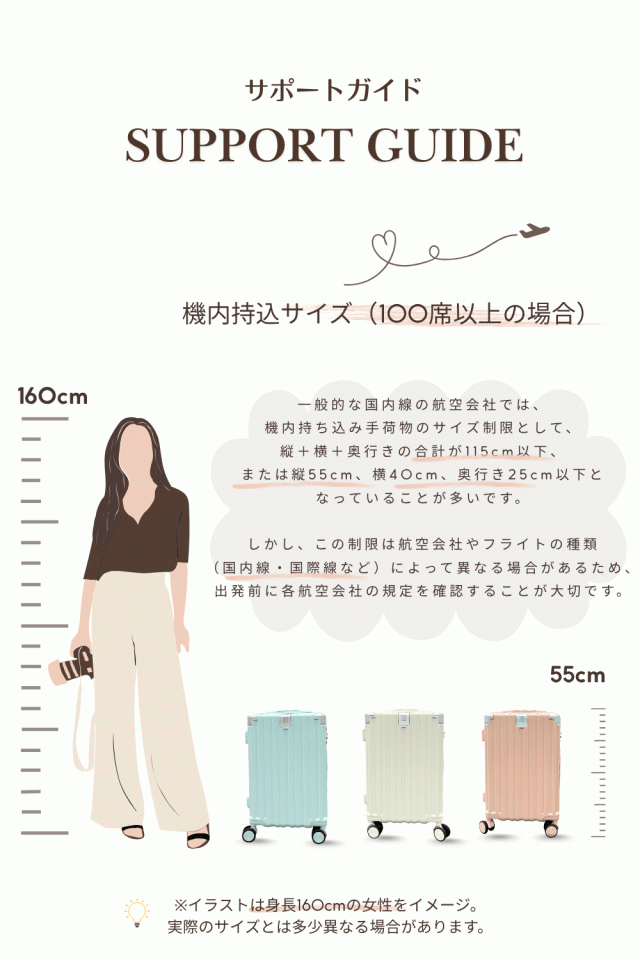 | ※ 機内持ち込みサイズについては、航空会社により基準が異なる場合があります。 | |||