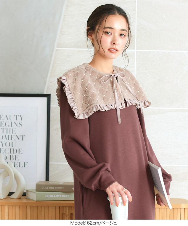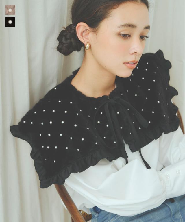 春新作 キルティングファー付け襟 J1159 入荷済 レディース 20代 30代 40代 付け襟 パール ファー キルティング リボン つけ襟 ティペット ファッション雑貨 ファーティペット 襟 ビッグ襟 衿 ビッグ衿 えり カラー