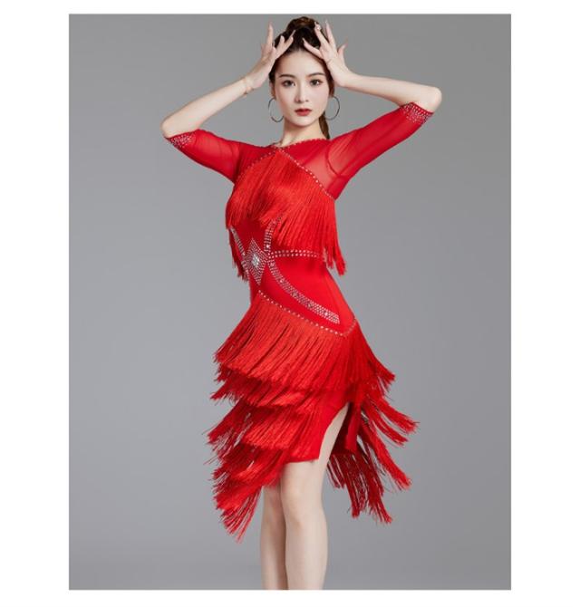社交ダンス ラテンドレス ワンピース ラテン衣装 チャチャチャ ダンス衣装 練習服 スタンダード ラテンダンス ラテン競技着 練習着 ダンス 演出 ダンスウエア ダンス発表会 団体 サルサダンス 競技用ドレス ステージ 演出服 d1317d7d7z7