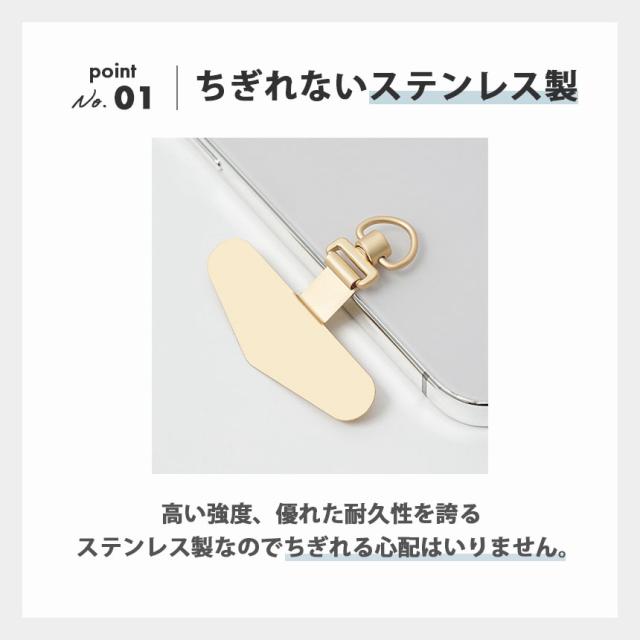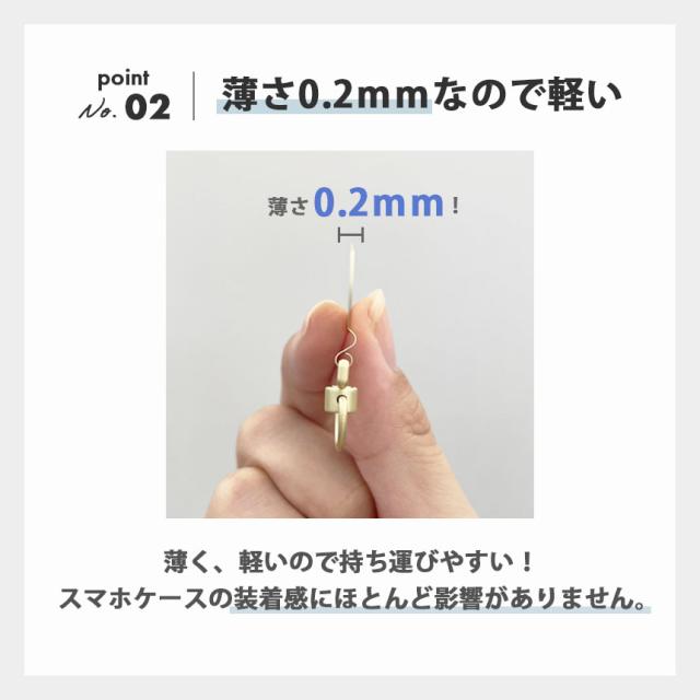 スマホケースに挟むだけ!スマホ ストラップホルダー ホルダー単品のみ【ちぎれないステンレス製】高い強度、優れた耐久性を誇るステンレス製なのでちぎれる心配はいりません。【薄さ0.2mmなので軽い】薄く、軽いので持ち運びやすい!スマホケースの装着感にほとんど影響がありません。【360度回転するので使いやすい】360度回転するので使いやすく、磨耗が均等に分散されるため、耐久性が高まります。