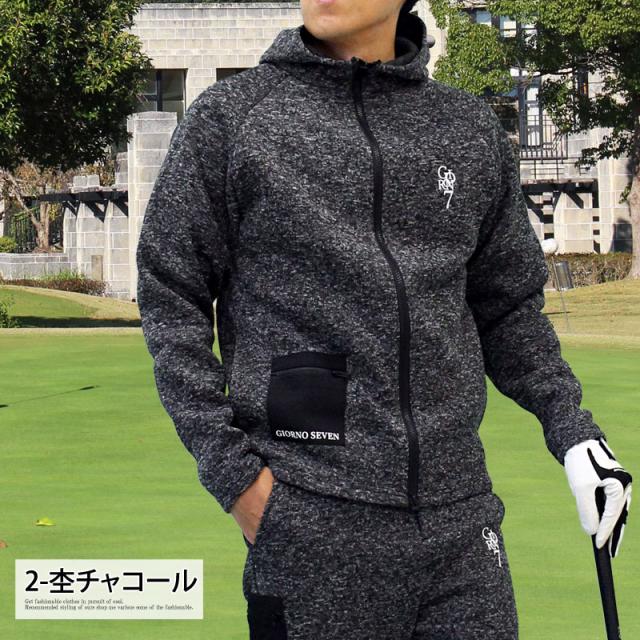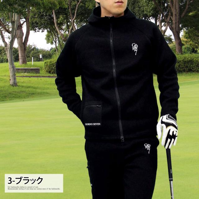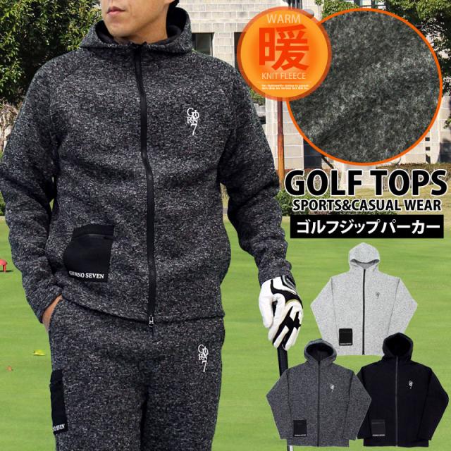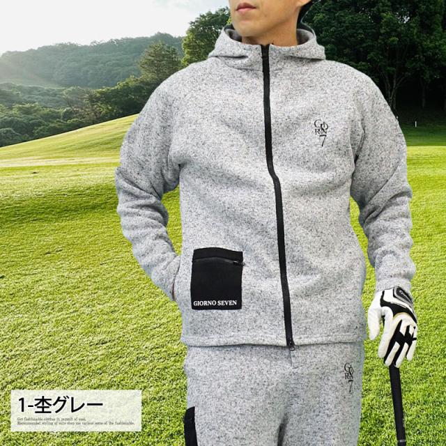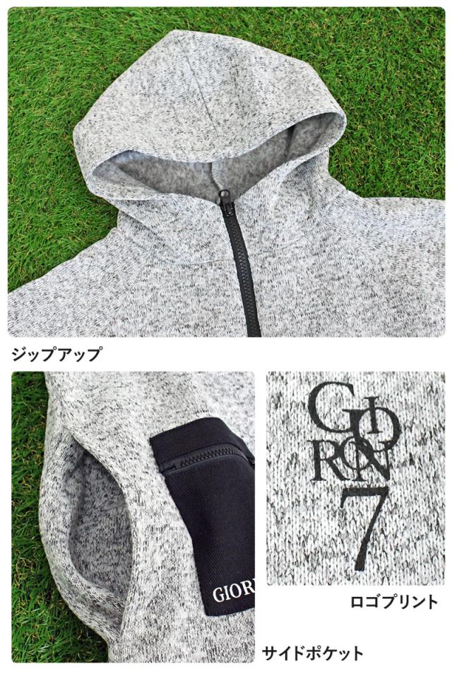 M~3L 新作 ゴルフウェア メンズ パーカー ジップアップ ジャケット GIORNO SEVEN ジョルノセブン 軽量 裏起毛 ニットフリース 暖かい ロゴ カジュアル スポーツMIX おしゃれ ブランド 秋冬 送料無料