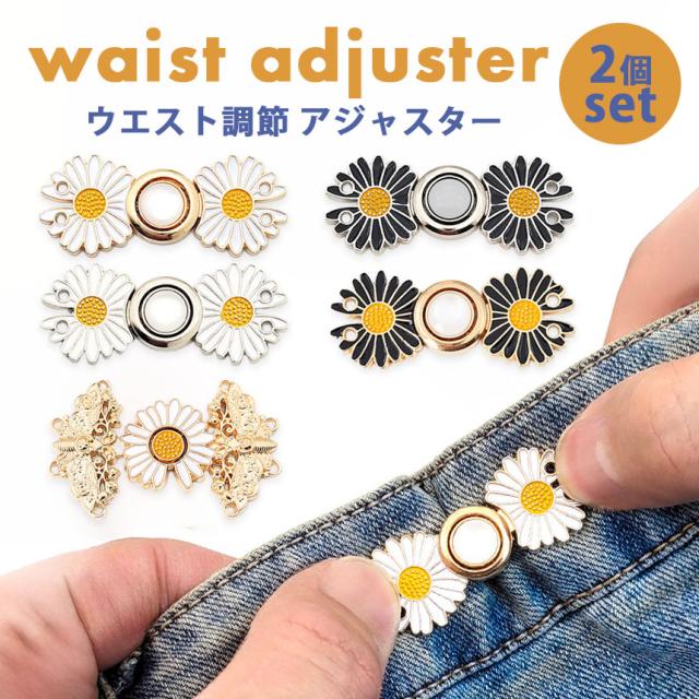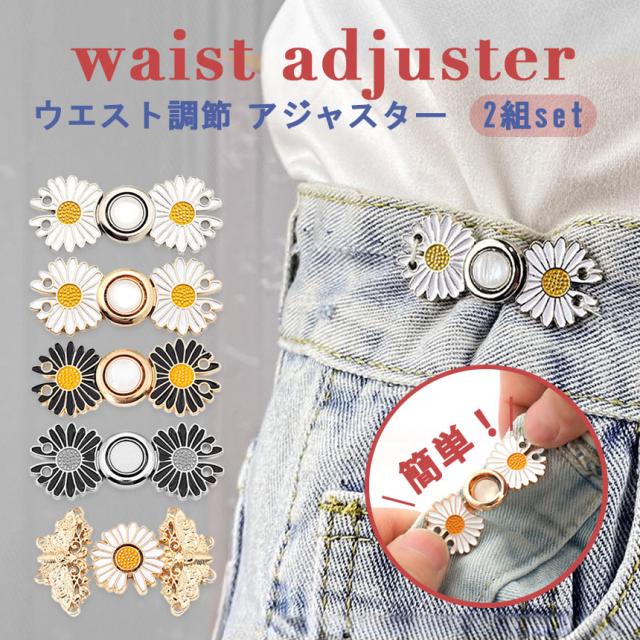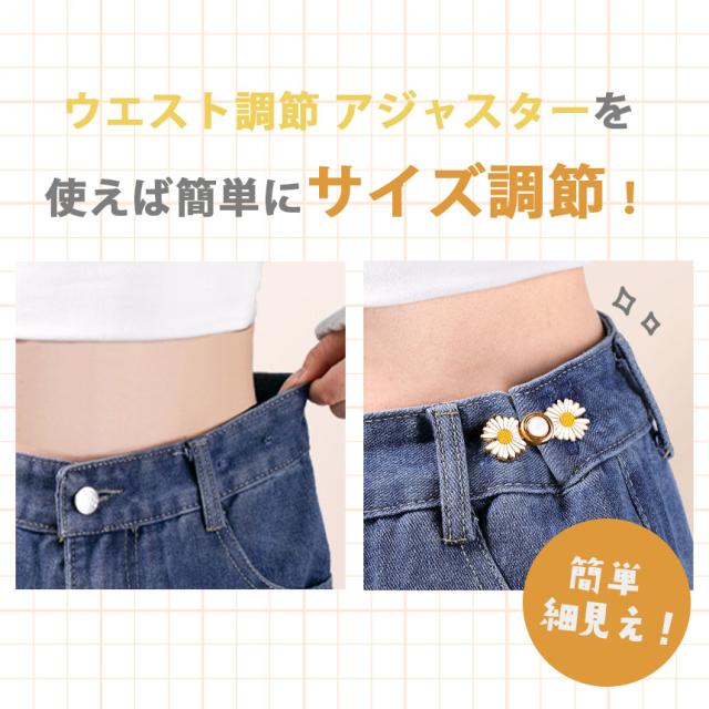 ウエスト調整アジャスター ウエストアジャスター 調整 ズボン ボタン ウェスト クリップ スカート パンツ スラックス おしゃれ ベルト不要 簡単 時短 ベルト調節 かわいい ウエスト セルフお直し バックル アジャスター お手軽 デニム パンツ 細見え アクセント