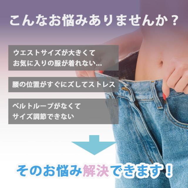 こんなお悩みありませんか?ウエストサイズが大きくて お気に入りの服が着れない...。腰の位置がすぐにズしてストレス。ベルトループがなくて サイズ調節できない。そのお悩み解決できます!ウエスト調節 アジャスター 2個セットウエスト調節 アジャスターを使えば簡単にサイズ調節!簡単細見えが実現します。