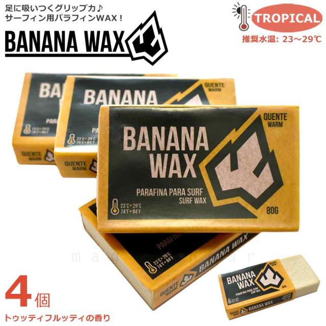 ◆ サーフィン ワックス 4個セット BANANA WAX サーフワックス ブラジル 板 滑り止め TROPICAL 初夏 真夏 秋 ◆