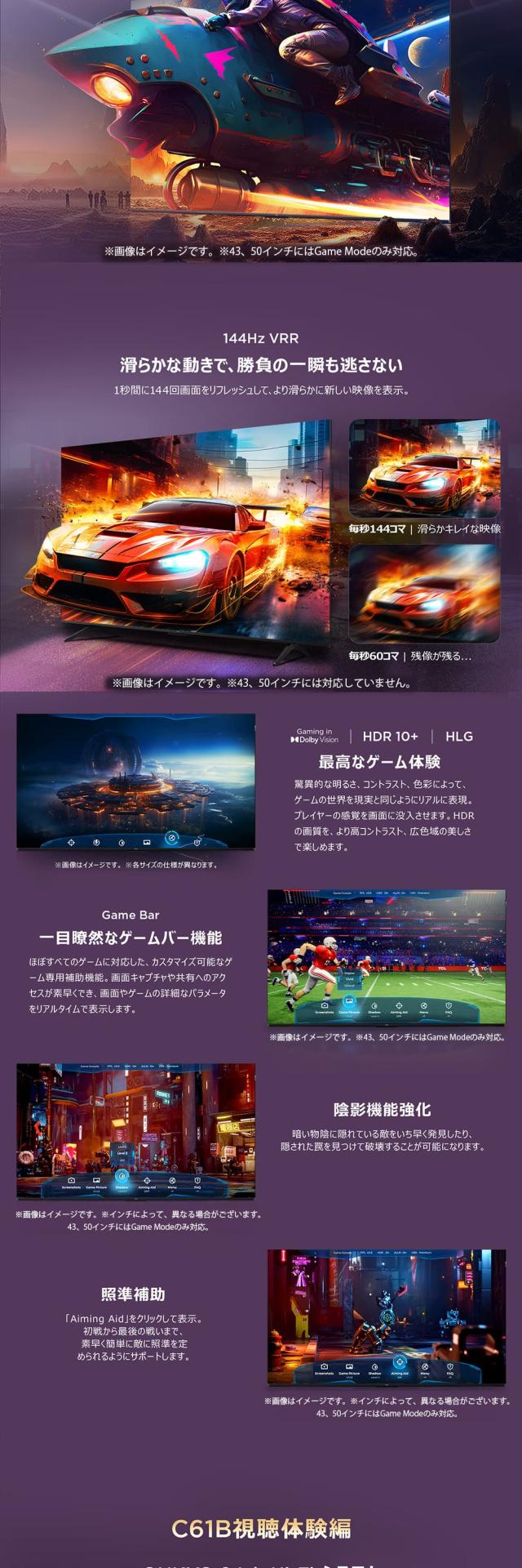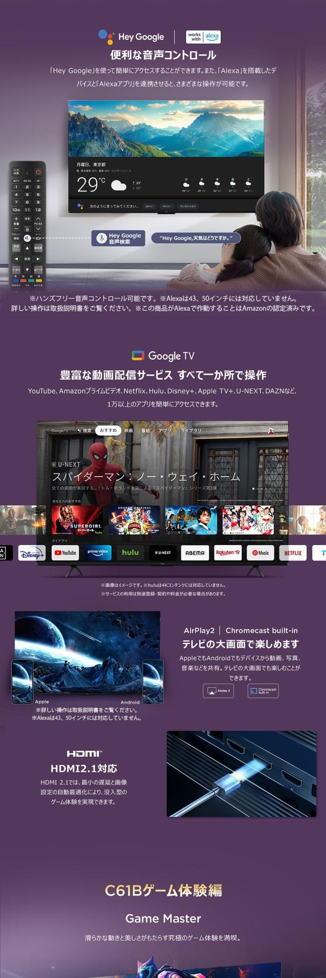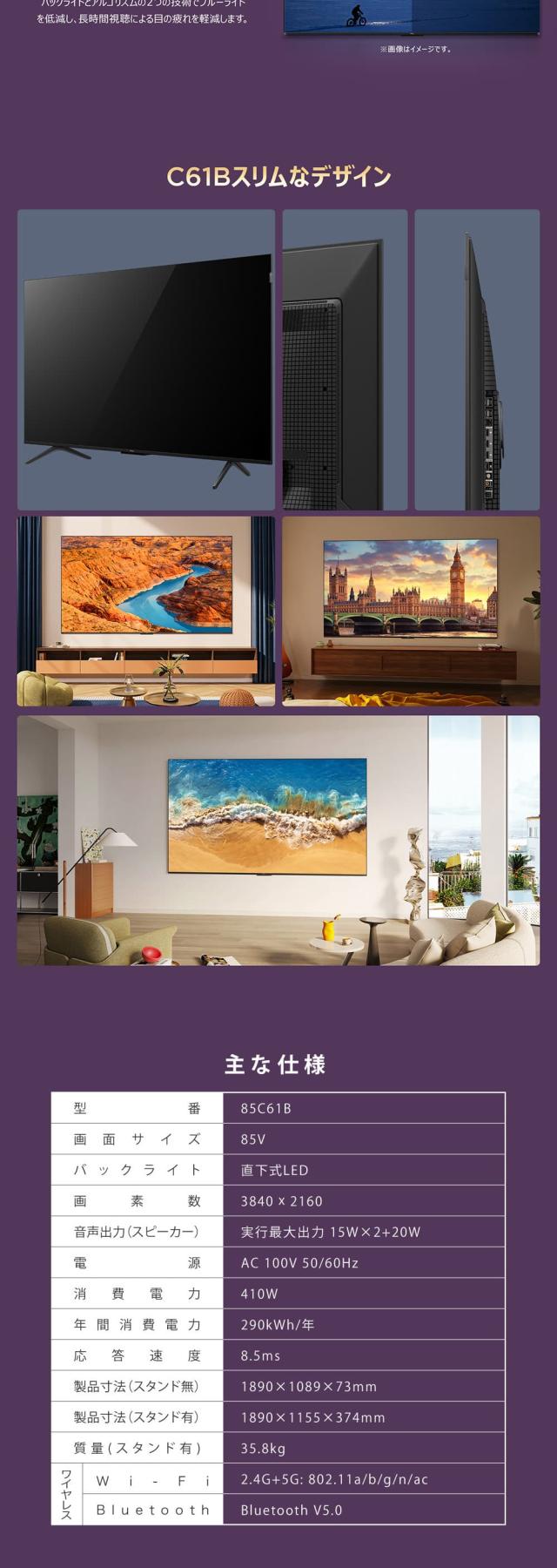 液晶テレビ 本体 4K内蔵 85型 85インチ TCL 85C61B 地上・BS・CSデジタル