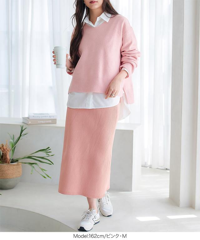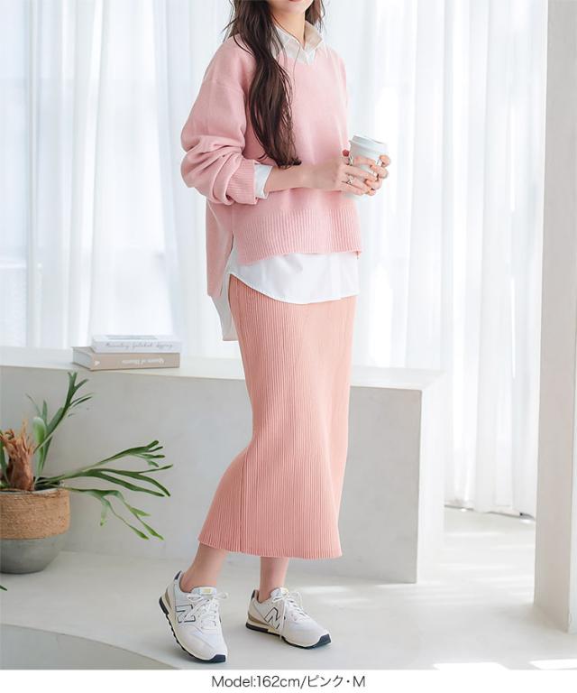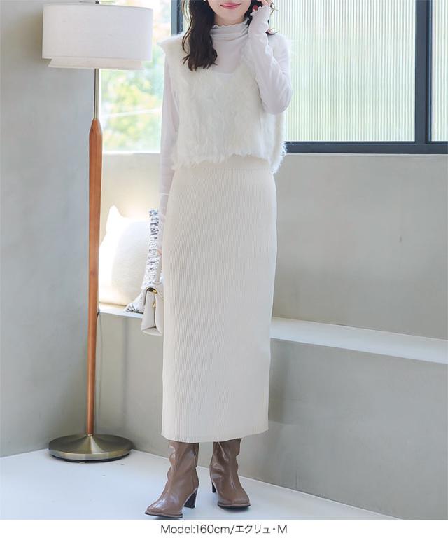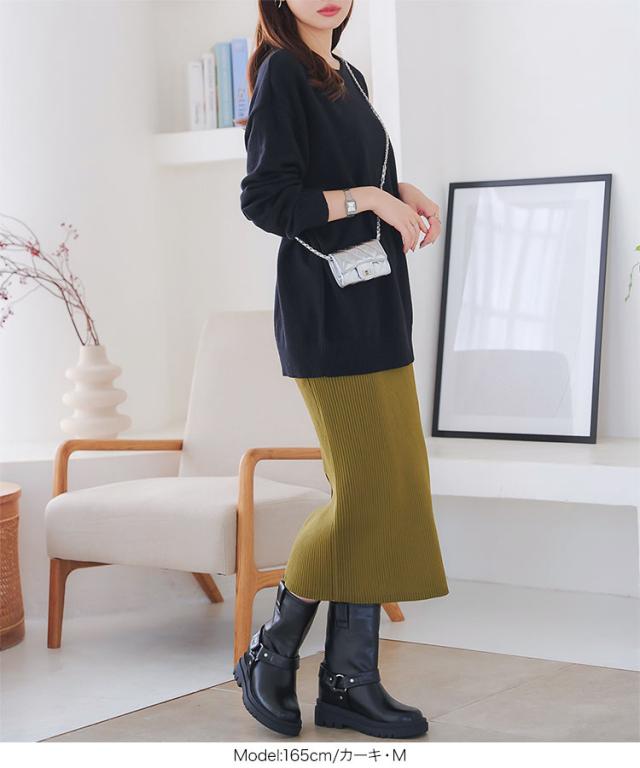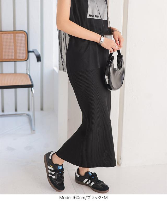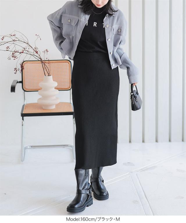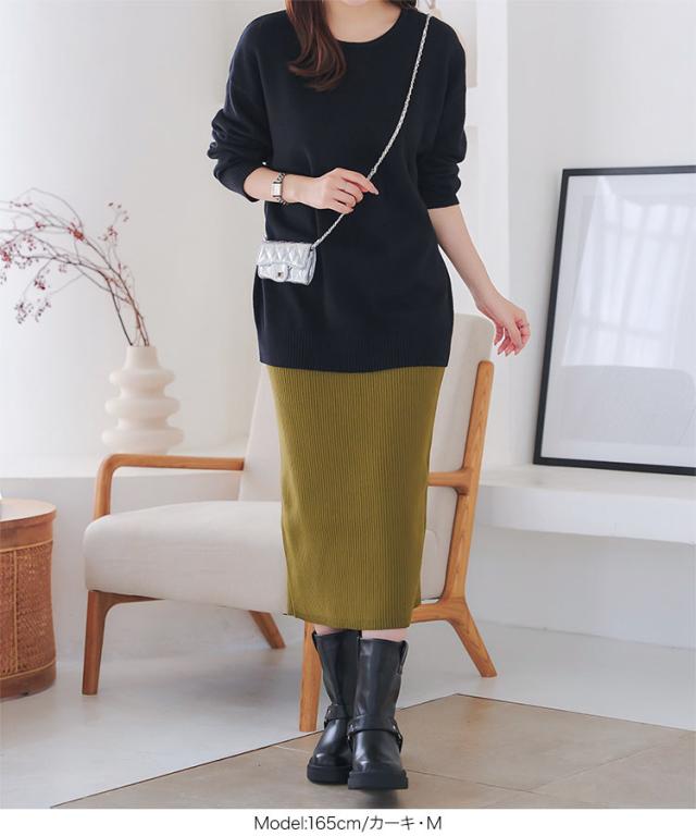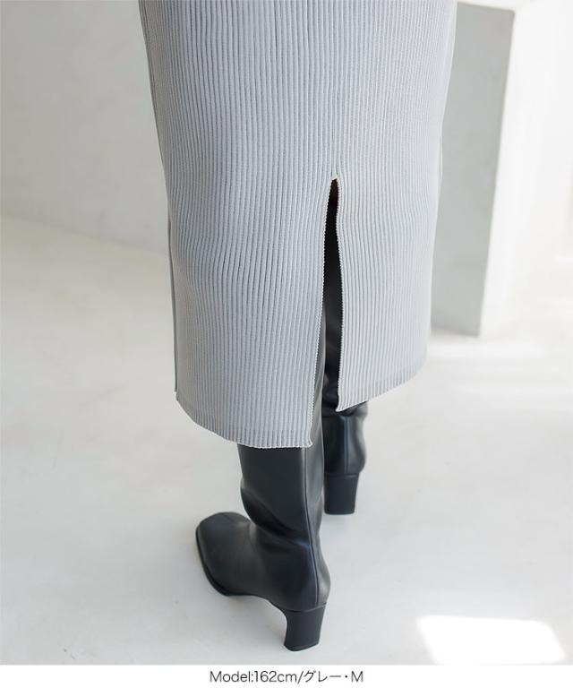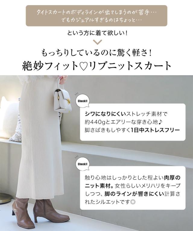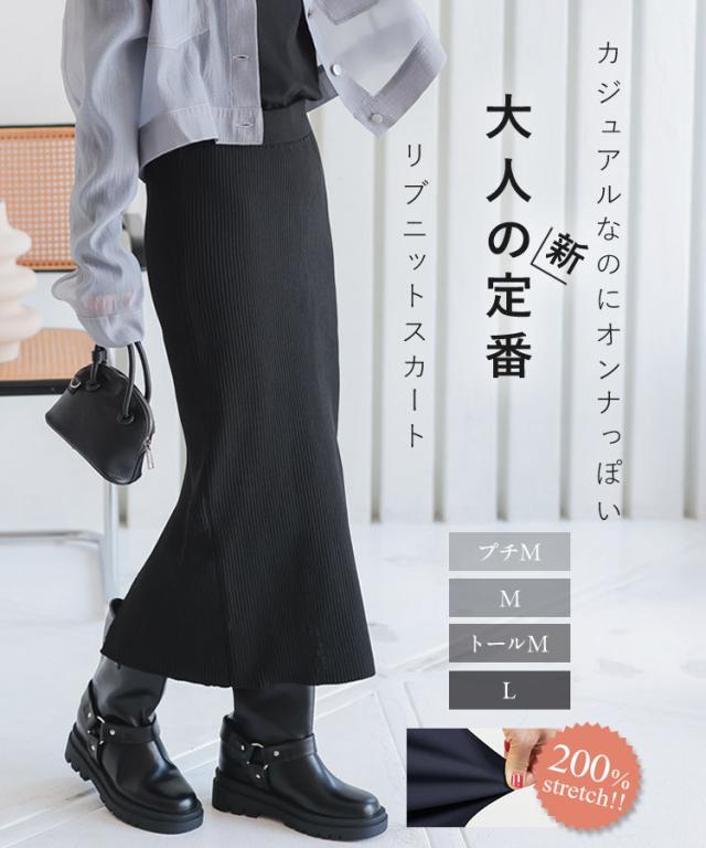 低身長さん高身長さんも選べる3丈ストレッチリブニットスカート M4088 納期 レディース 20代 30代 40代 リブ ニット スカート マキシスカート タイトスカート ナロースカート スリット 低身長 高身長 Iライン Lサイズ