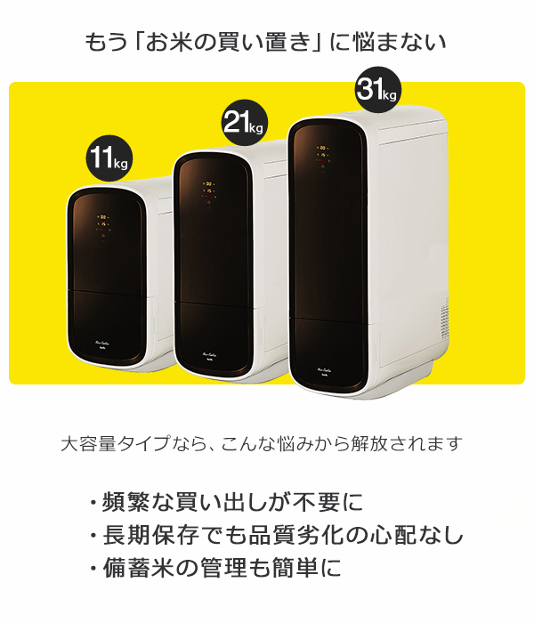 11kg、21kg、31kgの3種類の容量から、家族構成や使用頻度に合わせて最適なサイズを選択できます。