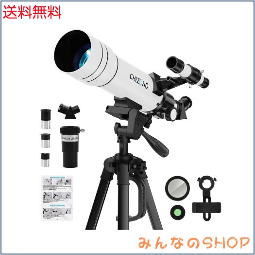 [直径70mmマルチコート光学対物レンズ、明るくクリアな視界を完璧に提供します] CHIZEHO天体望遠鏡は70mm大口径光学対物レンズを組み込み、光吸収面積を拡大し、複合コーティングにより光透過率を高め、画像をより明るく鮮明にします。(同じ明るさであれば、CT12天体望遠鏡は他の製品に比べ、20%明るくクリアな視界が得られます)