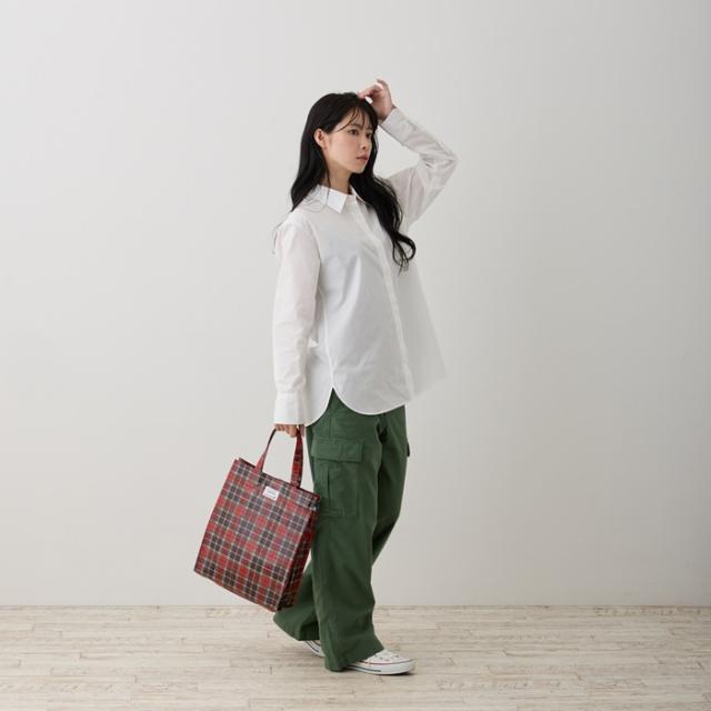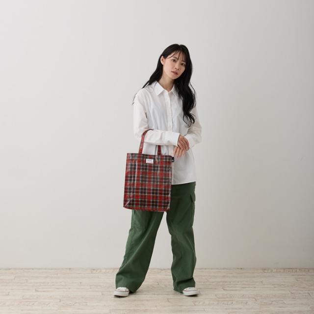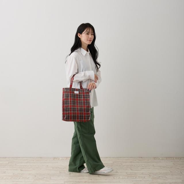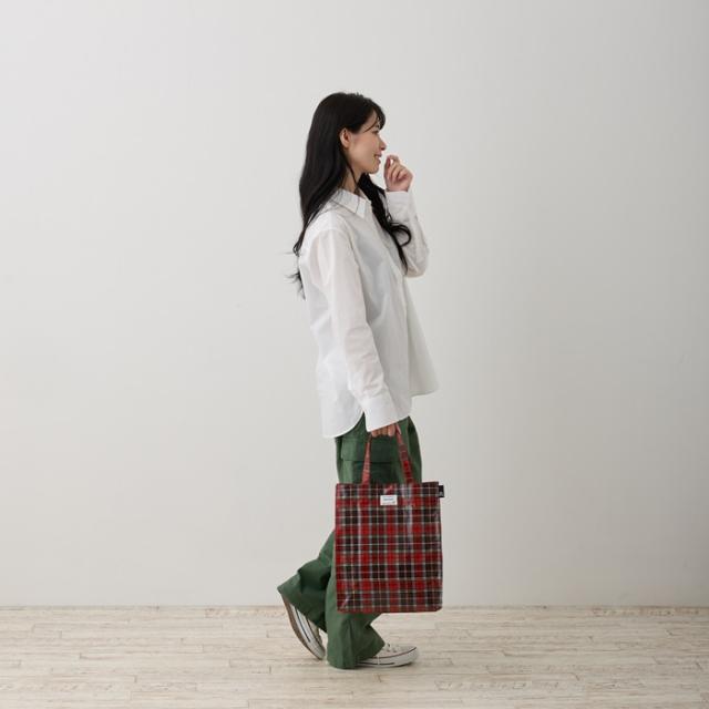 | 素材 | 表地:綿、ノンフタル酸PVCラミネート加工/裏地:ポリエステル/持ち手:綿、ノンフタル酸PVCラミネート加工 底板:ベルポーレン/留め具:マグネットホック |