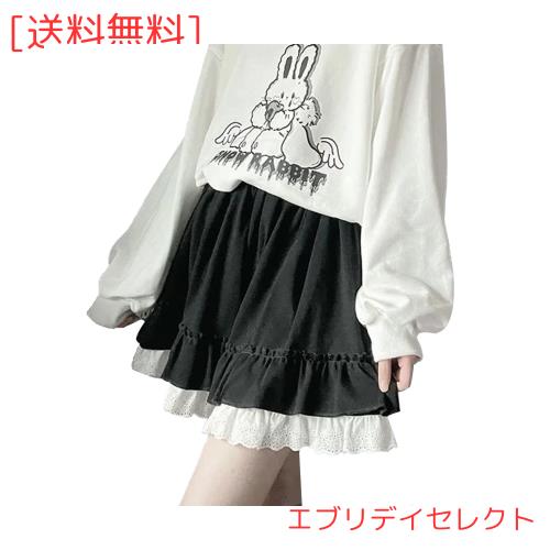 [LAVASEON] スカート ミニ レース レデイーズ 2層 可愛い 原宿 Aライン ハイウエスト JK ロリータ 制服 ファッション 白黒 プリーツスカ