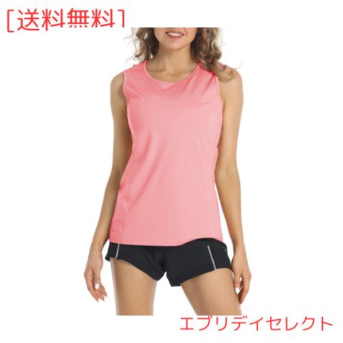 [KEFITEVD] ノースリーブtシャツ レディース レイヤードタンクトップ 重ね着 袖無し インナー 吸汗速乾 上着 ロング丈 ピンク L