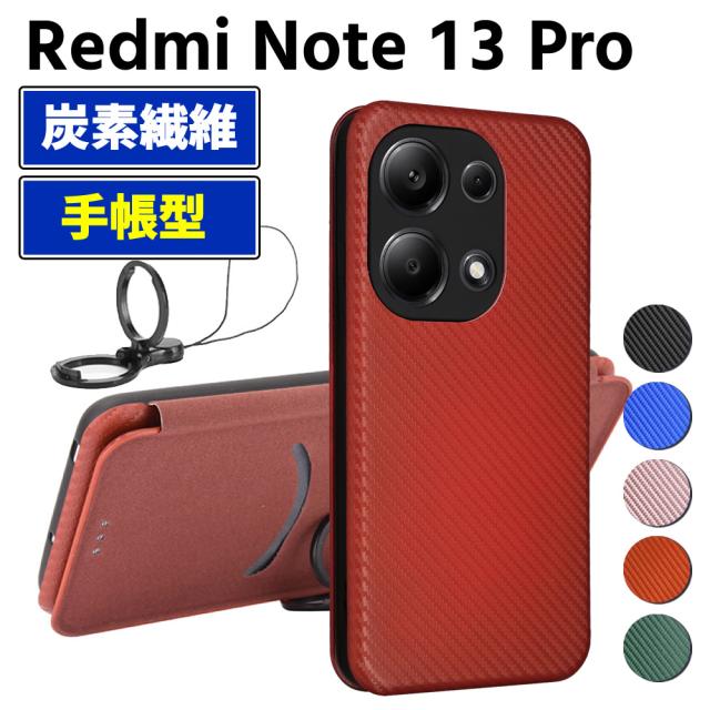 Redmi Note 13 Pro 5G 手帳型 薄型 カーボンファイバー スマートフォン用ケース 炭素繊維 カバー TPU 保護バンパー 財布型 マグネット式 カード収納 落下防止 カードホルダー