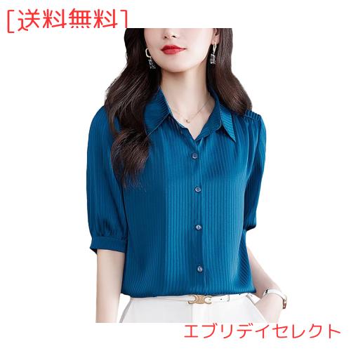 [Bolan Verl] ストライプ オフィス シャツ ブラウス 五分袖 ワイシャツ レディース ノーアイロン カッターシャツ 薄手 事務服