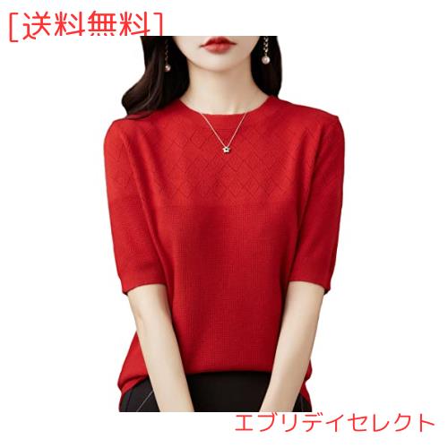 レディース春夏秋半袖レース透け編みサマーニットセーター。鮮やかなカラーからシックなカラーまで、 豊富な14色なので自分にピッタリの1枚が見つかります。