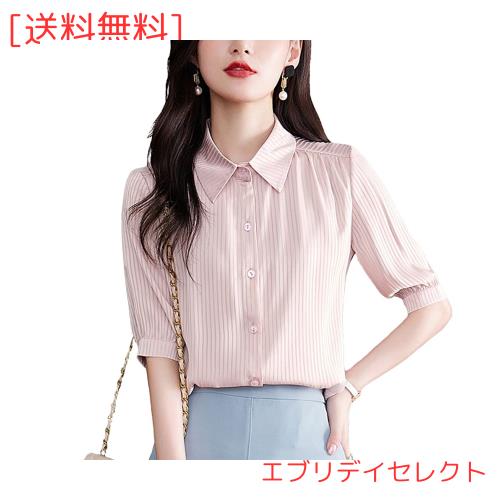 [Bolan Verl] ストライプ オフィス シャツ ブラウス 五分袖 ワイシャツ レディース ノーアイロン カッターシャツ 薄手 事務服