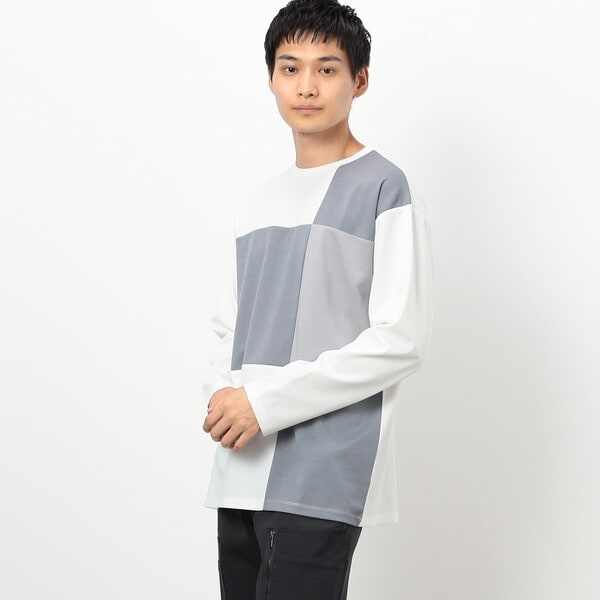 コムサイズム(COMME CA ISM)/カラーブロック パッチワーク クルーネックTシャツ(長袖)