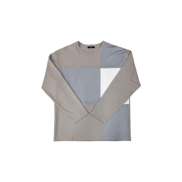 カラーブロック パッチワーク クルーネックTシャツ(長袖)