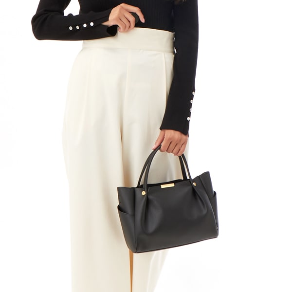 外側サイドポケットは部分的に配色を変えてポイントになっており、持つときのスタイルを選びません。