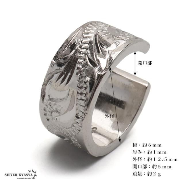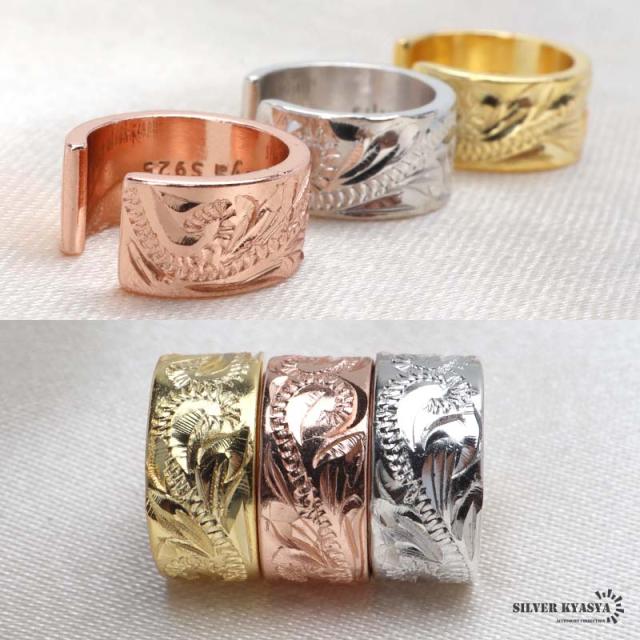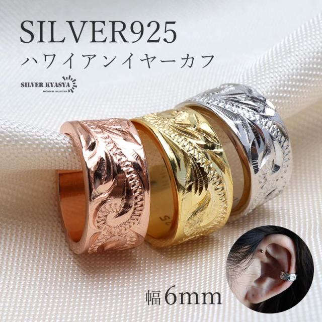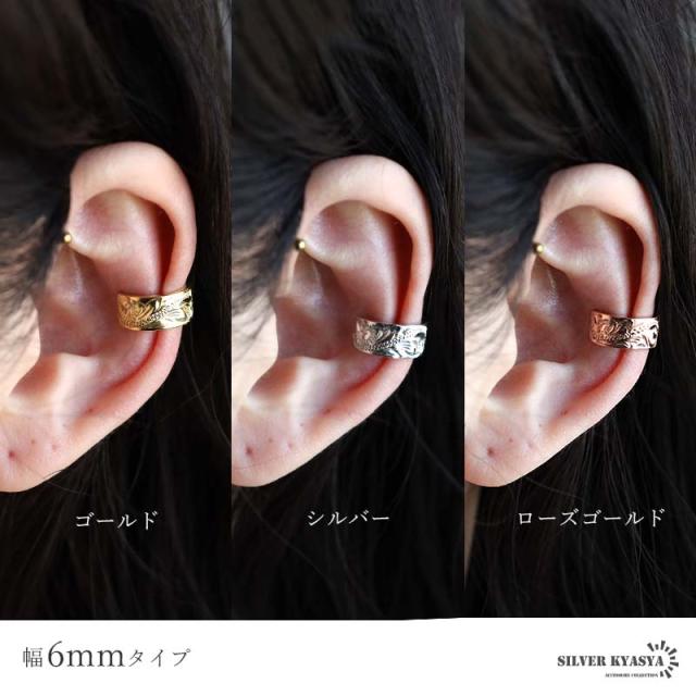 シルバー925 ハワイアンイヤーカフ 耳の穴不要 6mm フープピアス イヤカフ ハワイアンジュエリー イヤリング 耳飾り 手彫り プルメリア スクロール ゴールド 18kgp シルバー ローズゴールド 片耳 男女兼用 金アレ対応