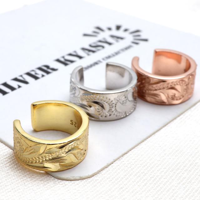 手彫りによる繊細なカットが映えるハワイアンイヤーカフ。SILVER KYASYA独自のオリジナルデザインアイテムで、ここにしかないデザインを楽しめます。ゴールド・シルバー・ローズゴールドの3カラーバリエーション。