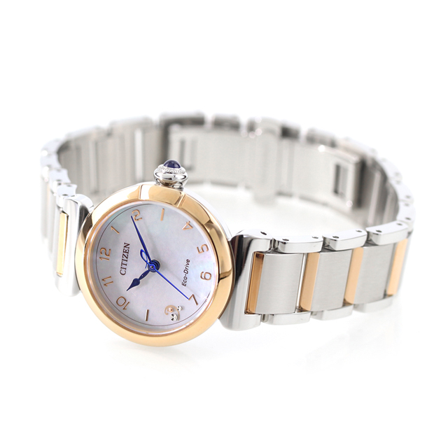 正規品 7年保証キャンペーン 送料無料 シチズン エル ソーラー 光発電エコドライブ 光発電エコ・ドライブ レディース 腕時計 EM1136-87D CITIZEN L ROUND collection アナログ シェル ピンクゴールド ◆地球のように美しいサステナブルウオッチ、 CITIZEN L(シチズン エル)。幸せを願って贈られる花「スズラン」をモチーフにした人気シリーズから、ミニサイズモデルが登場。エレガントなデザインが人気のオリジナルモデルの雰囲気はそのままにケースをサイズダウン。インデックスには、スズランのピュアな印象を表現したアラビア数字のフォントを採用。8時の位置に、スズランのしなやかな葉をつたう雫の輝きをあしらい、フェミニンな優しさと自然の躍動感を表現しました。どんなジュエリーとも相性の良いシルバーやウォームゴールドをベースに、ニュアンス感のある白蝶貝を組み合わせた、華やかな大人の魅力を感じさせるデザインです。 発売日:2024年9月発売