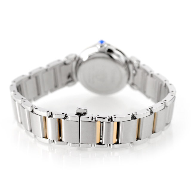 | 仕様 | 日常生活用防水(5気圧) 平均月差±15秒 クイックスタート機能 充電警告機能 過充電防止機能 駆動期間:フル充電時約6ヶ月可動 白蝶貝文字板 文字板部品:一部再生素材 りゅうず:ガラスセラミックス(ブルー色)入 インターチェンジャブル構造 |