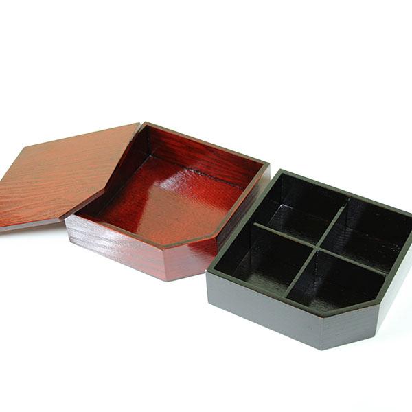 2段 重箱 木製 漆塗り 朱 黒 塗分け 和食器 天然木 漆器 漆塗り 小さい ミニ重箱 お重 お正月 運動会 お花見 おしゃれ 迎春