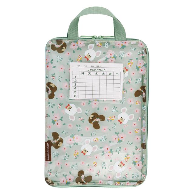連絡帳袋 仕切り付き 連絡袋 持ち手付き 時間割 くまのがっこう ( プリント入れ A4 ファイル 透明 子供 小学校 忘れ物防止 ファスナー くま キャラクター 小学生 宿題 連絡帳 仕分け 持ちやすい 袋 連絡帳入れ かわいい 花柄 )