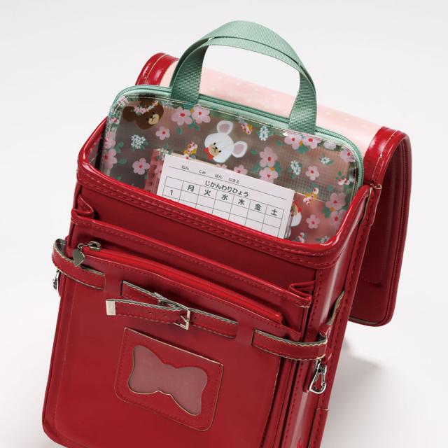 カバンなどから取り出しやすい持ち手が付いています。表面に名前&時間割表が付いているので、連絡帳袋だけ取り出して使用する際にも、自分のものと見分けが付きやすいので間違わずに安心です。