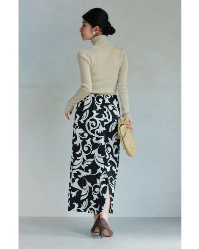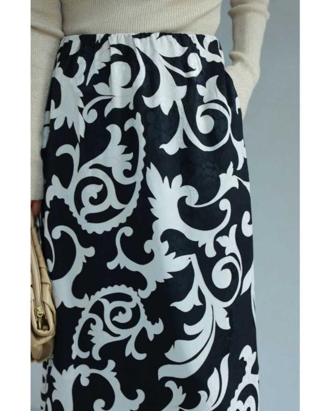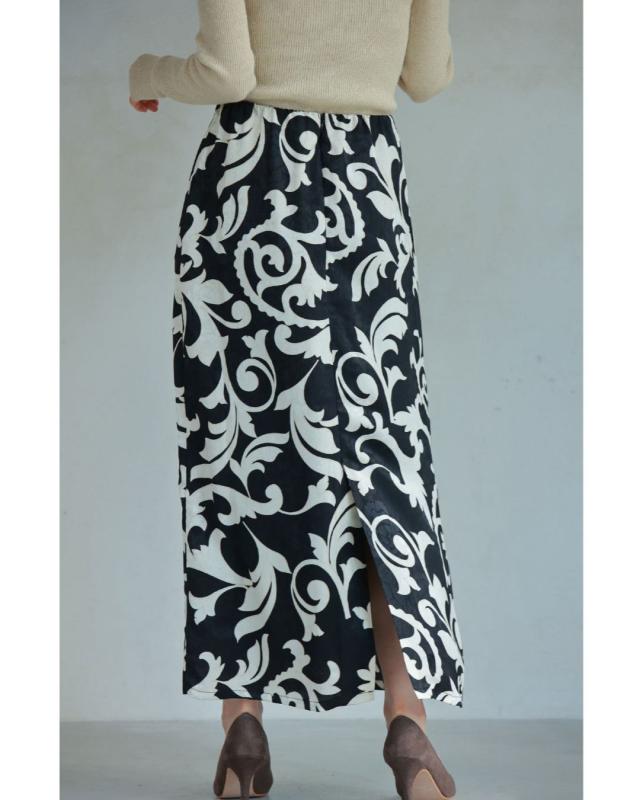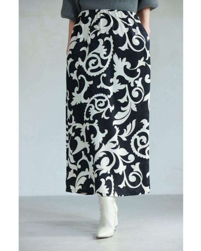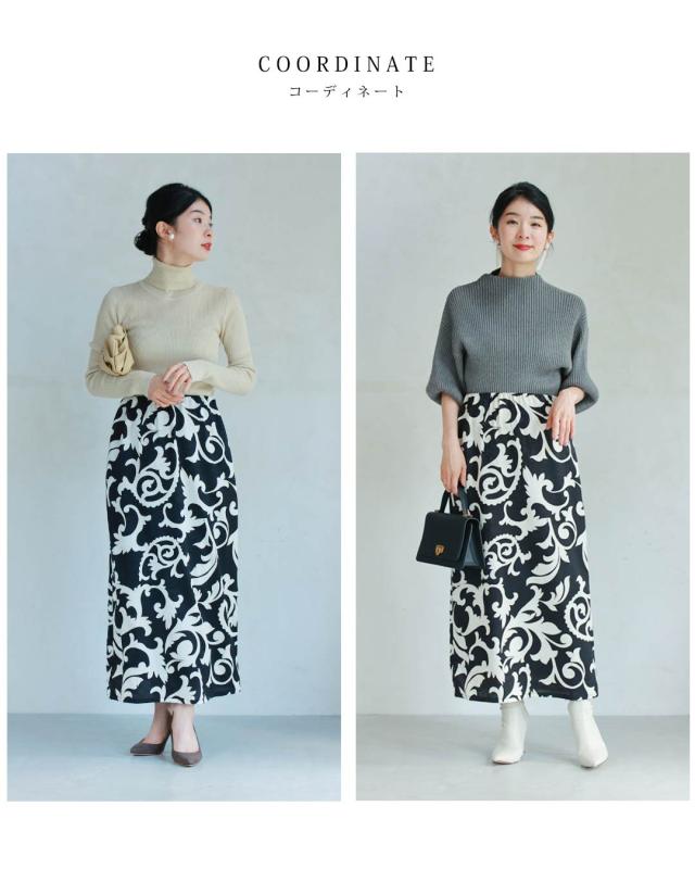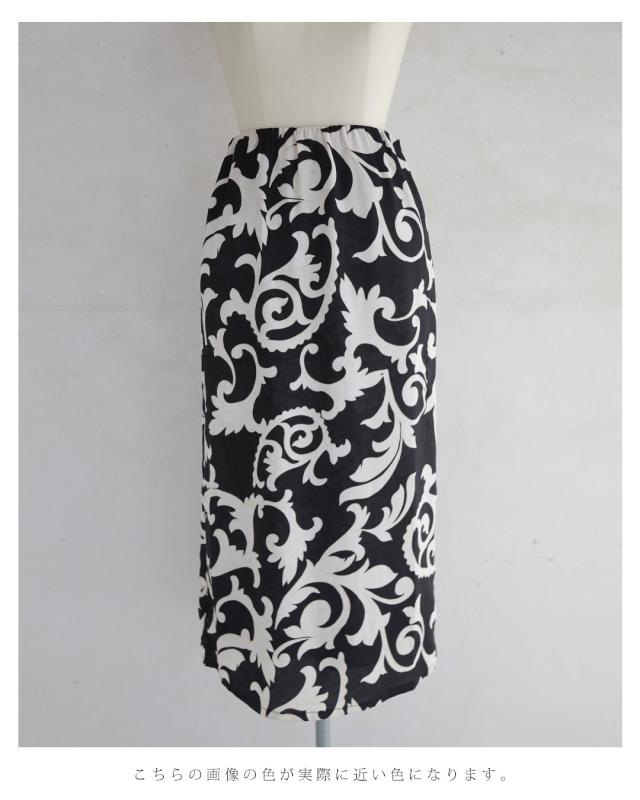 fzp00179od 新作 新着 再入荷 CAWAII FRENCHPAVE フレンチパヴェ エレガント ベーシック カジュアル 可愛い かわいい カワイイ おしゃれ オシャレ お洒落 個性 個性的 定番 ベーシック 大人かわいい 大人可愛い 上品 女性らしい デザイン スタンダード ナチュラル きれいめ キレイめ シンプル フェミニン レディース レディースファッション 大人 ママ ミセス 30代 40代 50代 60代 エレガントな蔦花柄 後ろスリット ストレート スカート 微光沢 ファスナー付 ウエストゴム ゴム 総ゴム Sサイズ Mサイズ 小さめ 小さめサイズ小さい 小さいサイズ 低身長 痩せ ほっそり 小柄 細身 タイト 春 秋 冬 秋服 秋物 冬服 冬物 細見え ブラック 黒 黒色 柄 総柄 日常着 普段着 日常使い おでかけ 女子会