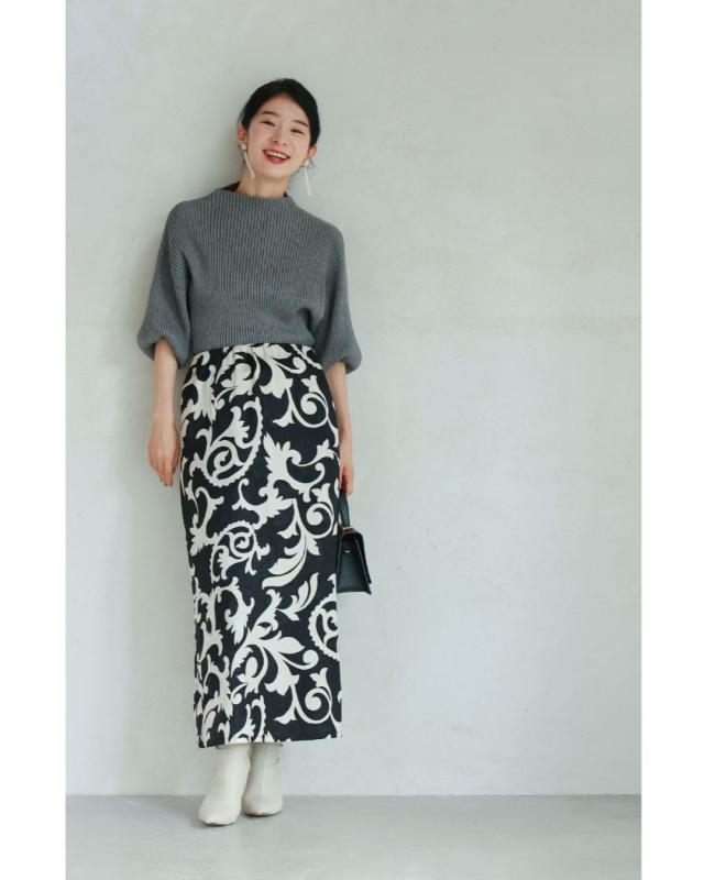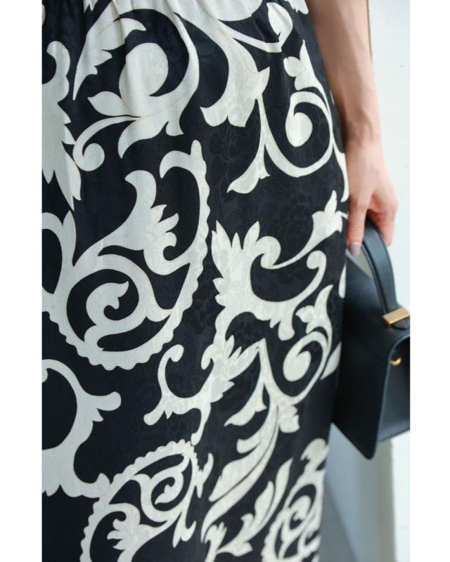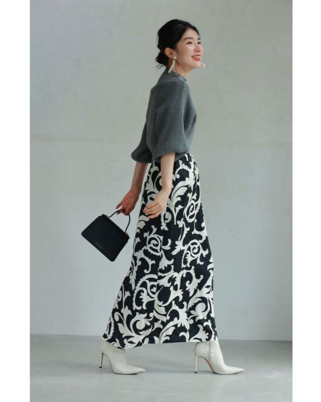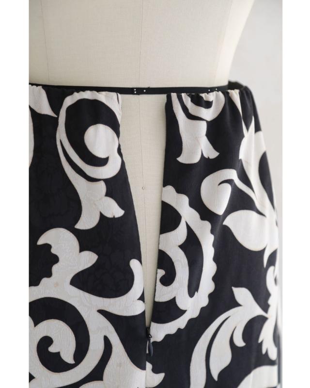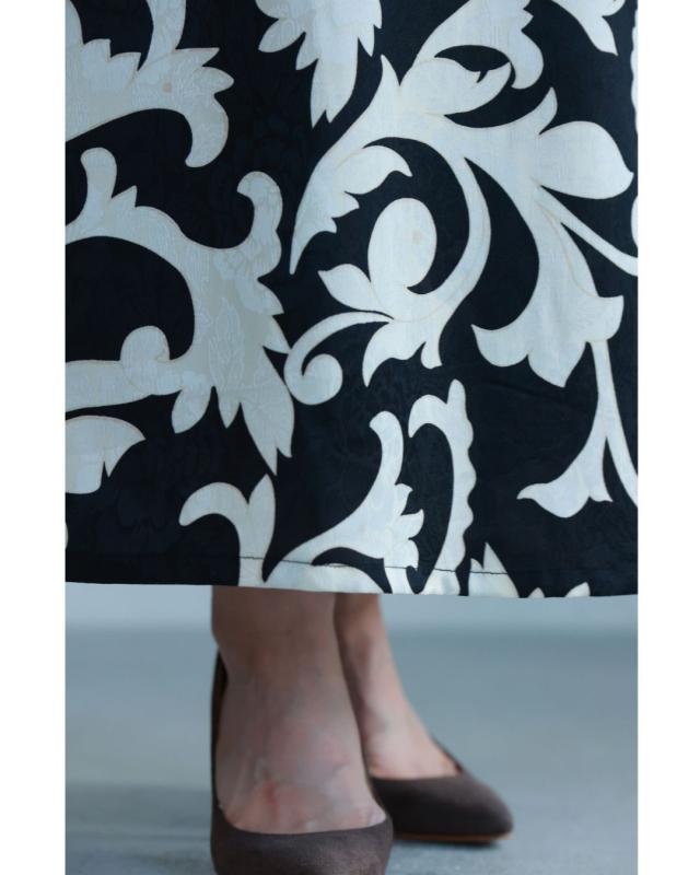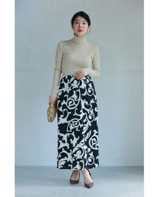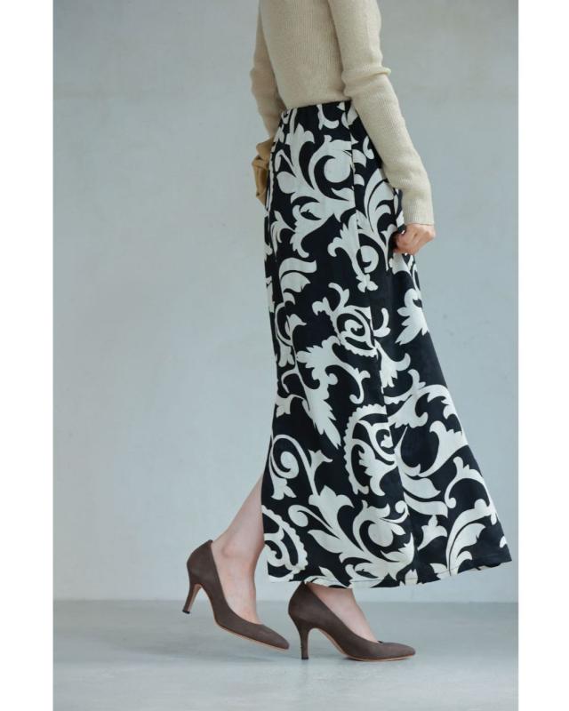 fzp00179od 新作 新着 再入荷 CAWAII FRENCHPAVE フレンチパヴェ エレガント ベーシック カジュアル 可愛い かわいい カワイイ おしゃれ オシャレ お洒落 個性 個性的 定番 ベーシック 大人かわいい 大人可愛い 上品 女性らしい デザイン スタンダード ナチュラル きれいめ キレイめ シンプル フェミニン レディース レディースファッション 大人 ママ ミセス 30代 40代 50代 60代 エレガントな蔦花柄 後ろスリット ストレート スカート 微光沢 ファスナー付 ウエストゴム ゴム 総ゴム Sサイズ Mサイズ 小さめ 小さめサイズ小さい 小さいサイズ 低身長 痩せ ほっそり 小柄 細身 タイト 春 秋 冬 秋服 秋物 冬服 冬物 細見え ブラック 黒 黒色 柄 総柄 日常着 普段着 日常使い おでかけ 女子会