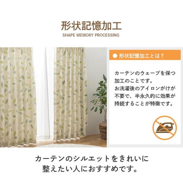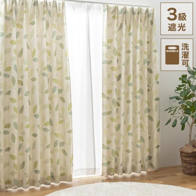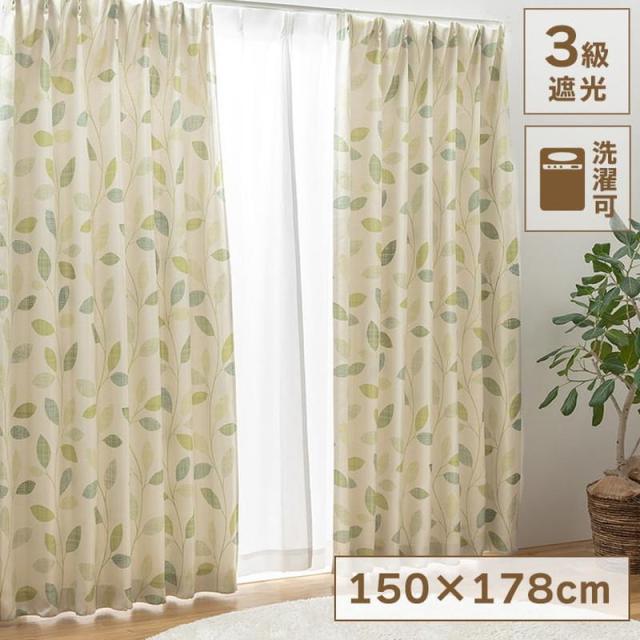 カーテン ドレープカーテン 単品1枚 幅150x丈178cm ボタニカル リーフ柄 3級遮光 遮光 形状記憶 洗濯機で洗える