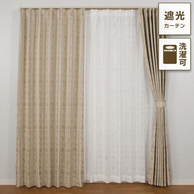 カーテン ドレープカーテン 単品1枚 幅200x丈178cm エレガント 花柄 リーフ柄 遮光 裏地付き 形状記憶 洗濯機で洗える