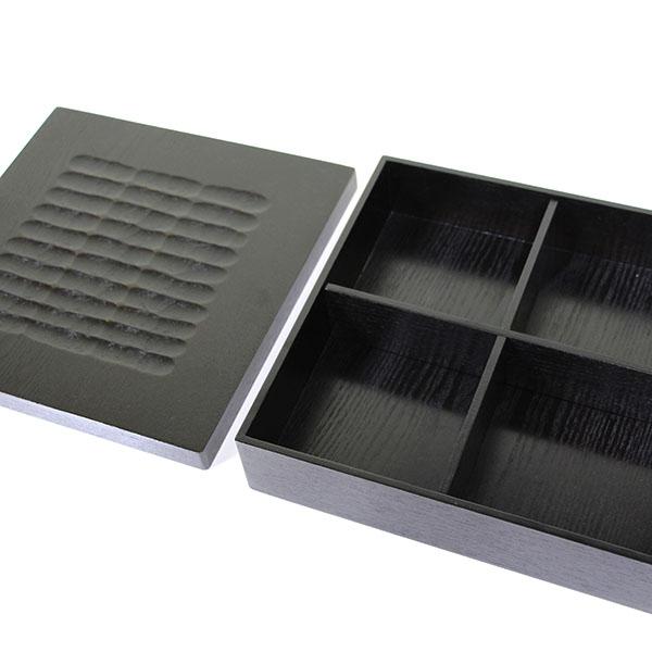 松花堂 弁当箱 木製 漆塗り 1段 漆器 オードブル 重箱 黒 和食器 天然木 お正月 運動会 お花見 おしゃれ 迎春