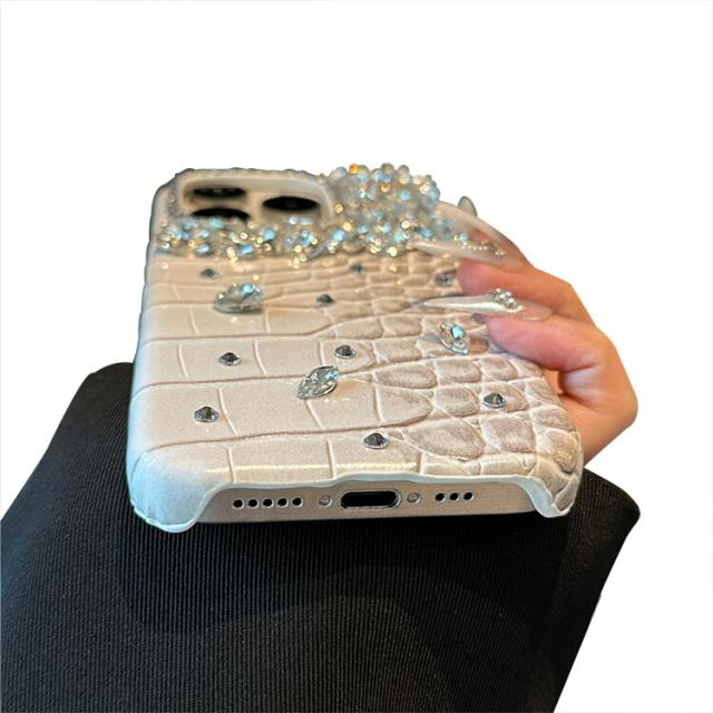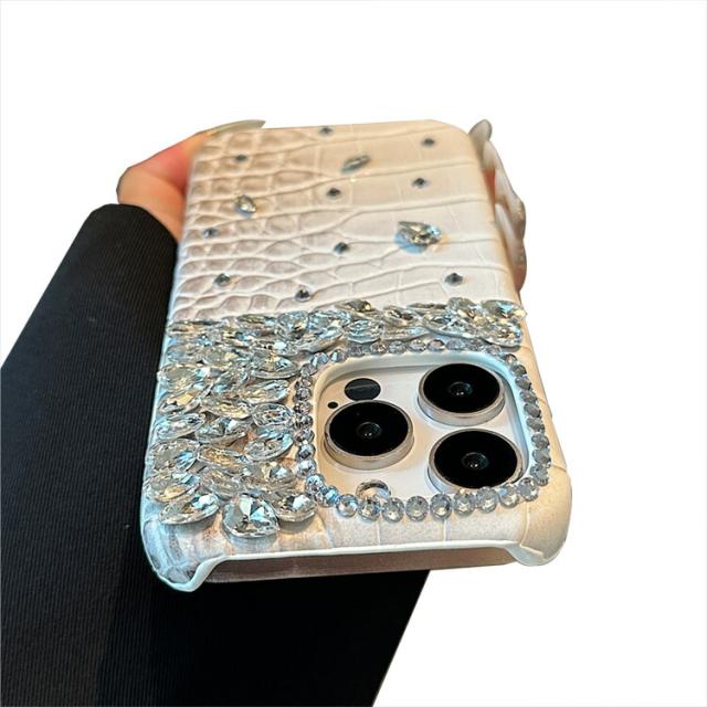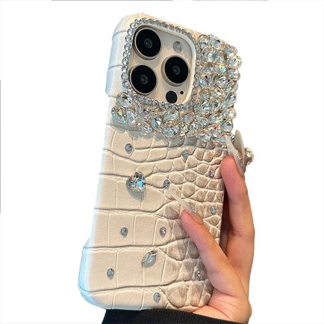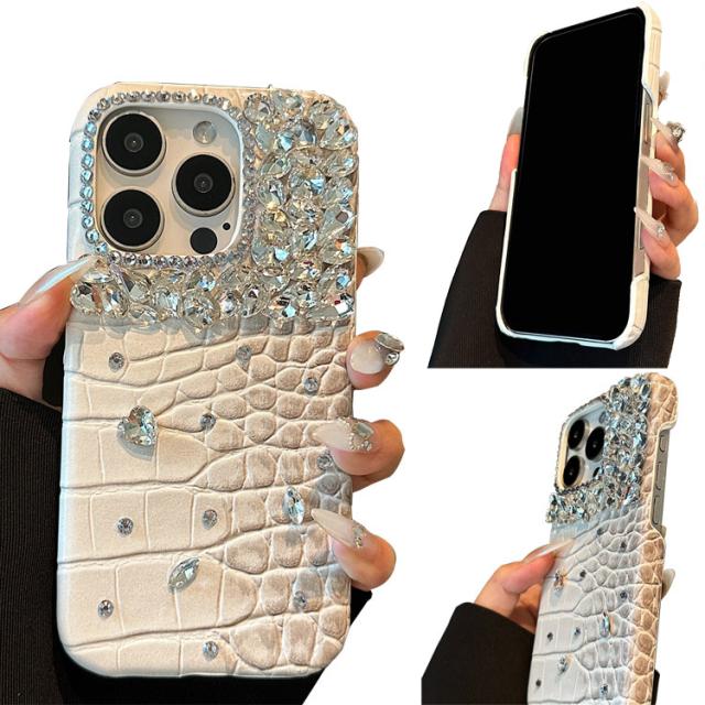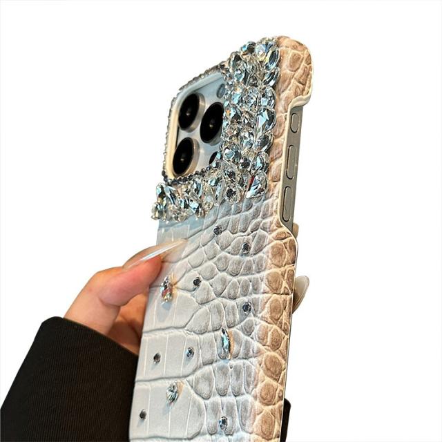 iPhone16 ケース クロコダイル調 ハードケース PUレザー きらきら かわいい 人工ダイヤ クリスタル ラインストーン Apple iPhone 16 Plus/16 Pro/16 Pro Max アップル アイフォン16/16プラス/16プロ/16プロマックス