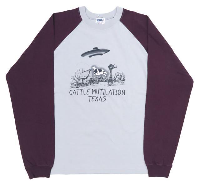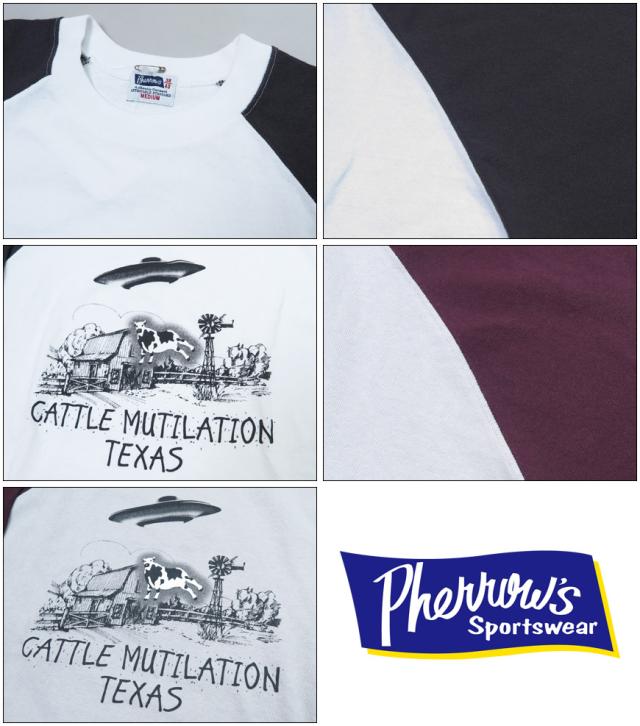 フェローズ PHERROW'S 長袖 Tシャツ ラグランスリーブ プリント "CATTLE MUTILATION TEXAS" 24W-PRLT3