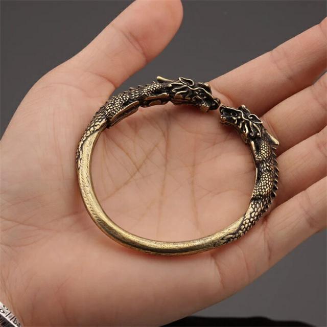双龍 バングル 調節可能 純銅ブレスレット、ファッションジュエリーギフト、ビンテージスカルメンズパンクブレスレット、ハロウィンクールジュエリー、クラシックファッション耐久性スカルブレスレット 効果 健康 銅 ブレスレット アクセサリー