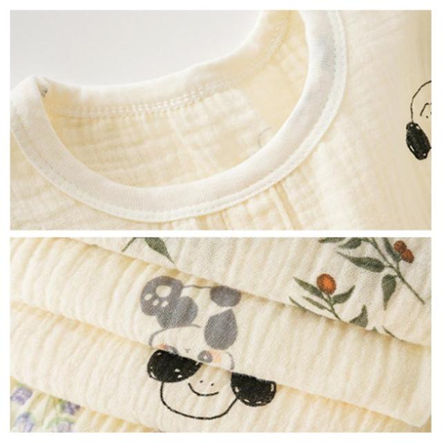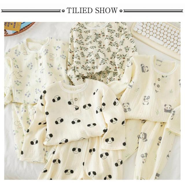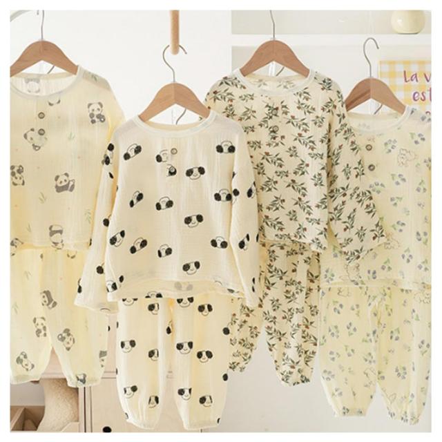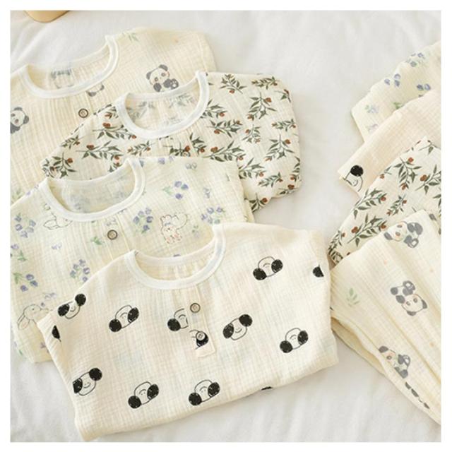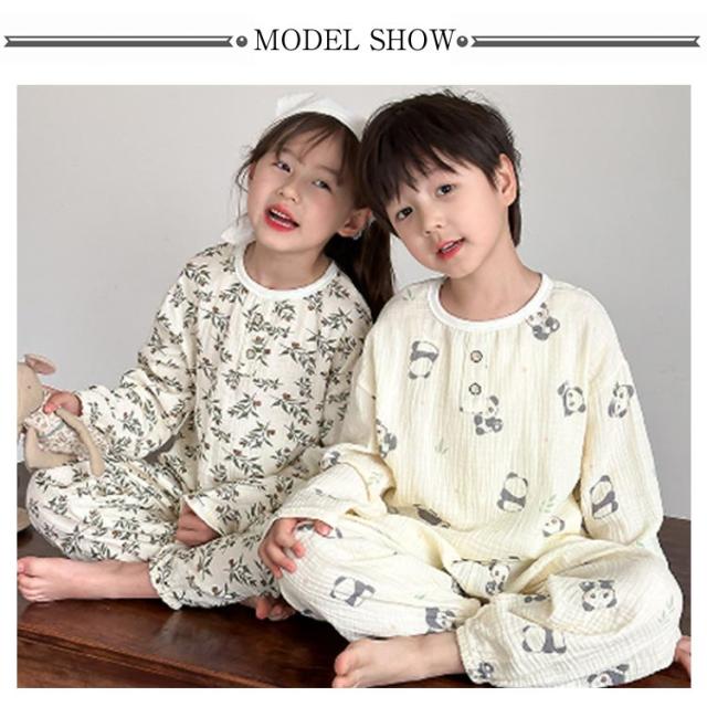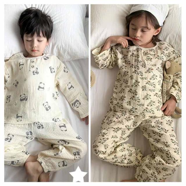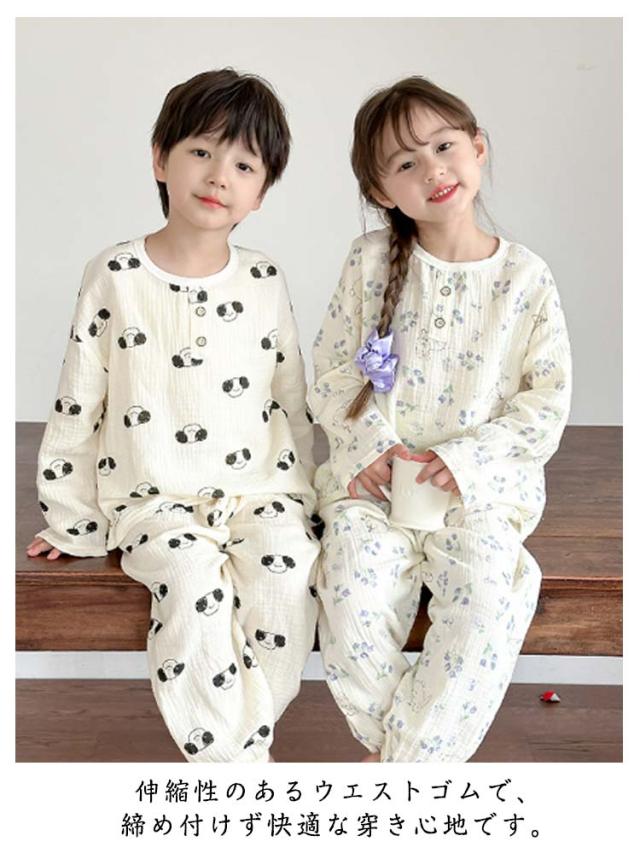 綿 パジャマ ダブルガーゼ 男の子 ダブルガーゼ 薄手 女の子 子供用 ベビー用 春 寝巻き 夏 秋 ルームウェア 長袖 襟なし キッズ 部屋着 かわいい コットン ナイトウェア 保育園 小学生 子供服