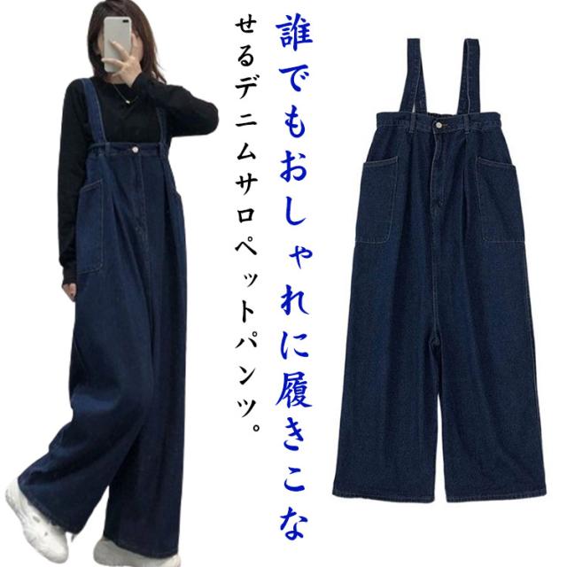 サスペンダージーンズ サスペンダージーンズ レディース ワイド 美脚パンツ ワイドパンツ ハイウエスト オーバーオール デニムオールインワン 体型カバー 足長効果 デニム デニムサロペット サスペンダー サロペット つなぎ 送料無料 夏