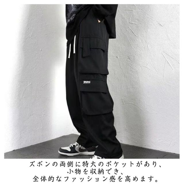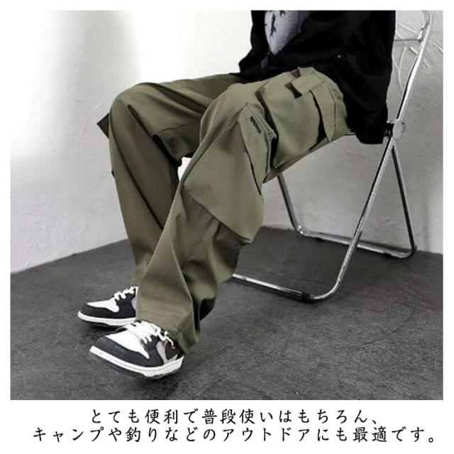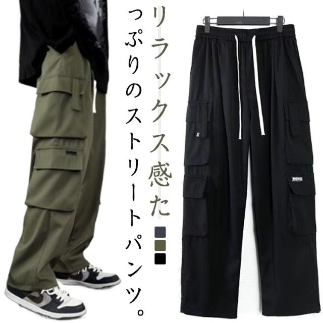 ボトムス リラックスパンツ メンズ ロングパンツ 春秋 ワイドパンツ カーゴパンツ 大きいサイズ ウエストゴム ワイドパンツ シンプル ストレート アウトドア ズボン イージー 作業着 釣り